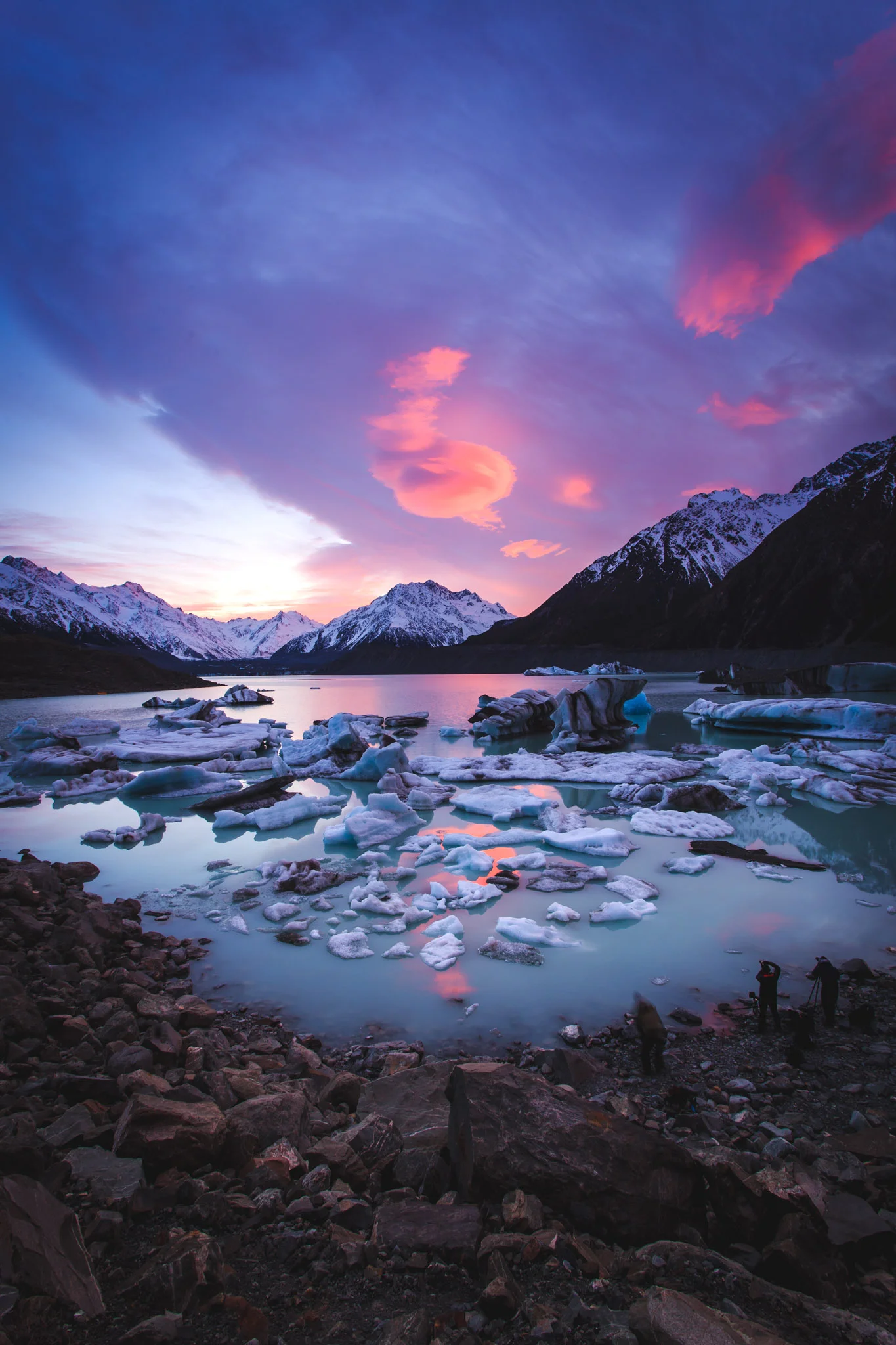 However! I was in New Zealand, I was near glaciers and icebergs for the first time, and I was keen to shoot another sunrise. It's at this point I should say that I had met up with another photographer named Jess, who was also traveling around New Zealand shooting landscapes. We'd met up in Queenstown a couple of days prior, and shot the road out toward Glenorchy and a town called Paradise. We'd parted ways while I went off to shoot Milford Sound and Nugget Point, and met up again that afternoon at the Mt. Cook/Aoraki YHA. While I was talking a bit talk about getting up to shoot Tasman Glacier that morning, Jess was skeptical but told me to message her in the morning if I ended up getting up. If she was awake and up to it she'd come - if not, I'd go it alone!