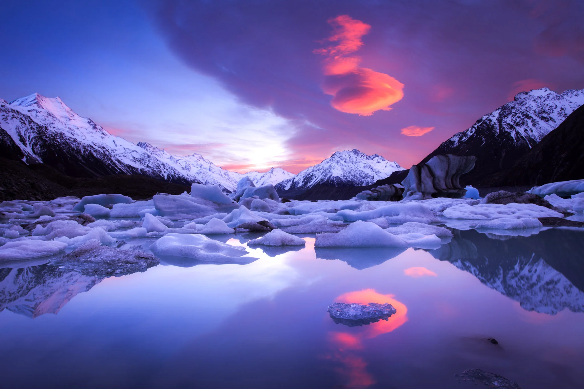 After moving down to the waters edge I really only had about 10 minutes before the colour drained from this incredible lenticular cloud formation, but it was enough to get one of my favourite shots from the whole trip. Sure if I'd had my run of the whole area and arrived in time to try a heap of compositions I might have shot from somewhere else, and I wouldn't have put the cloud reflection right on top of that tiny iceberg, but sometimes a scene is just so good that even a flawed composition can still yield amazing photos, and be one of your favourite shoots of your career.